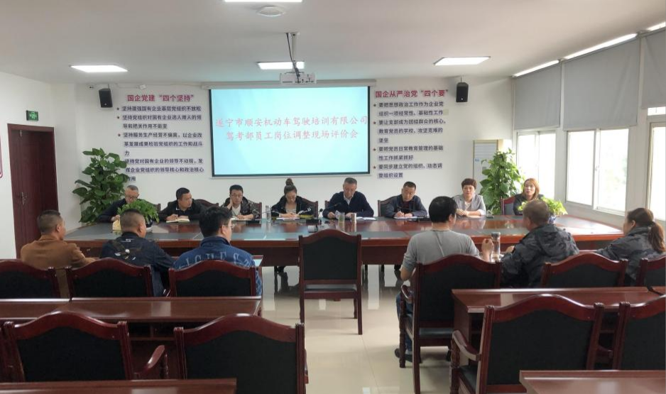? ? 10月14日,遂寧興業(yè)集團直屬企業(yè)市順安駕培公司召開駕考部員工崗位調(diào)整現(xiàn)場評價會,以書面陳述、現(xiàn)場問答、評審打分等形式組織7名駕考部員工進(jìn)行崗位競聘。